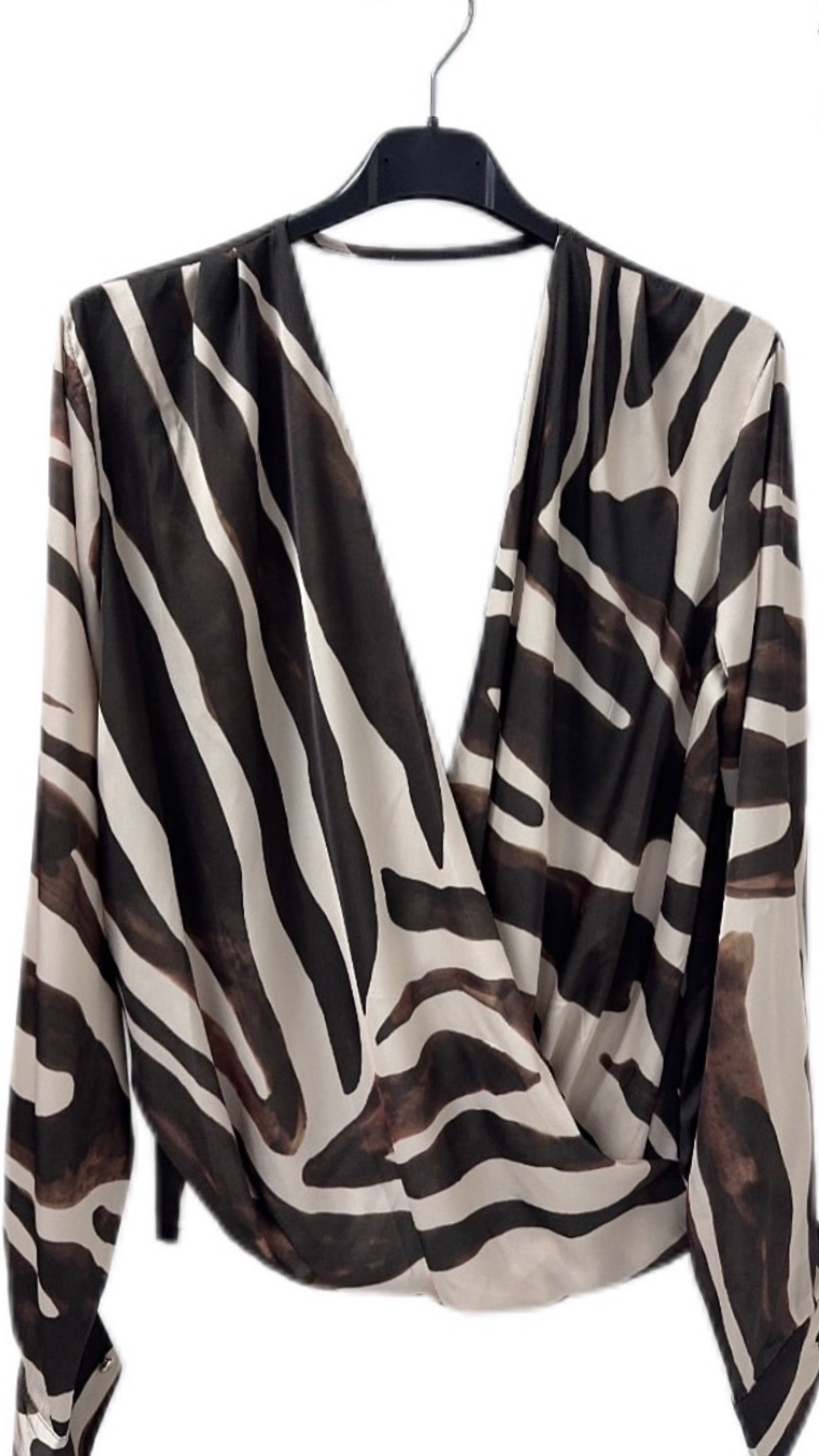 Linee morbide, stampa decisa: la blusa “Zebra Mood” è perfetta per chi ama distinguersi con stile. Il taglio incrociato valorizza la figura, mentre la texture satinata regala un tocco di eleganza. Da indossare sia con un tailleur che con un jeans per un look day-to-night super glam.