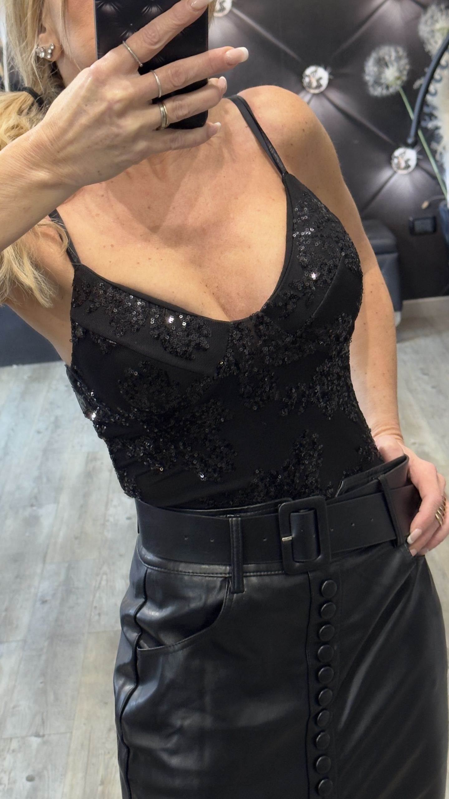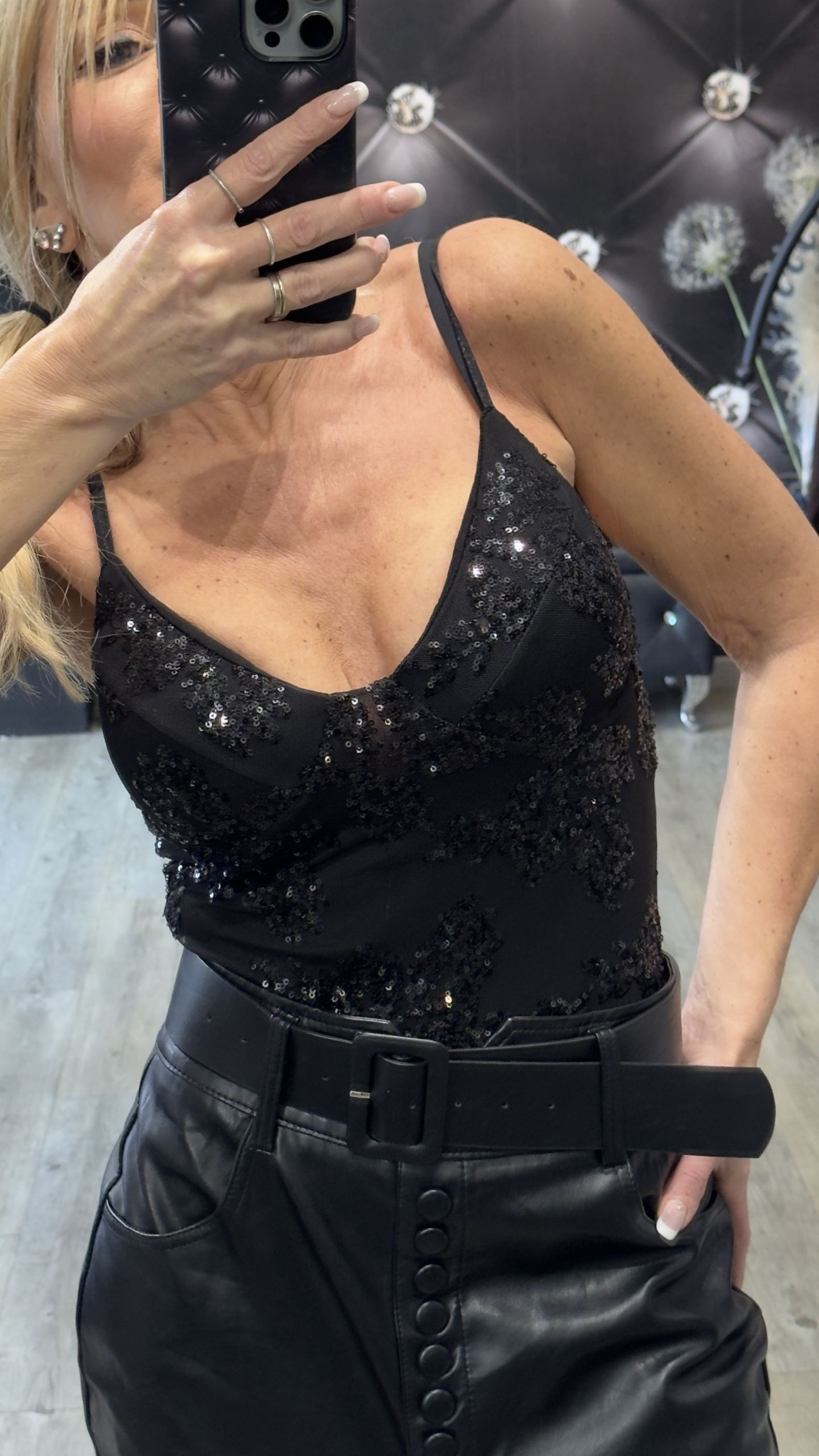 BODY SCINTILLANTE PAILLETTES FLOREALI nero