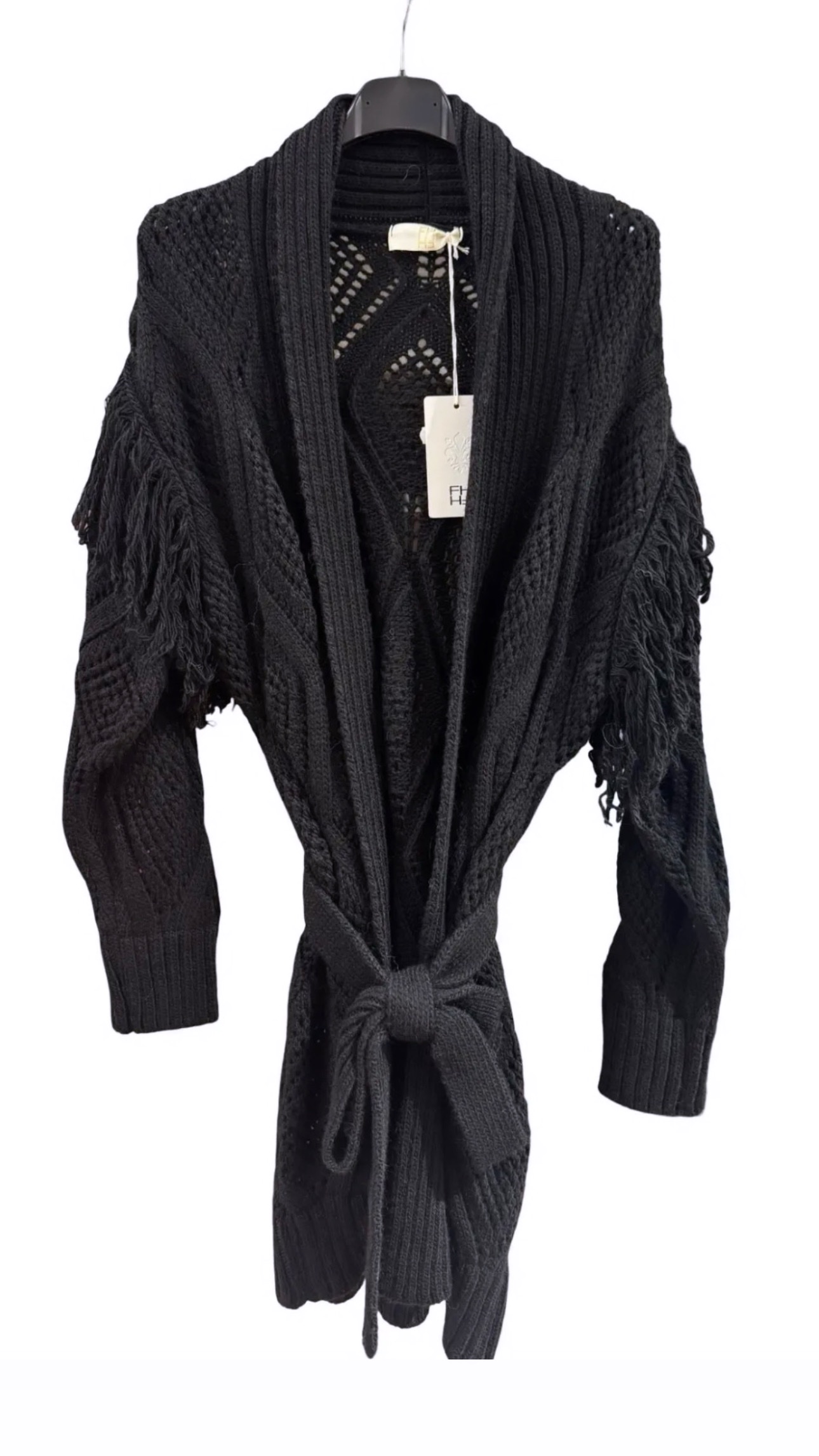 CARDIGAN CHOCO IN ALPACA CON CINTURA nero