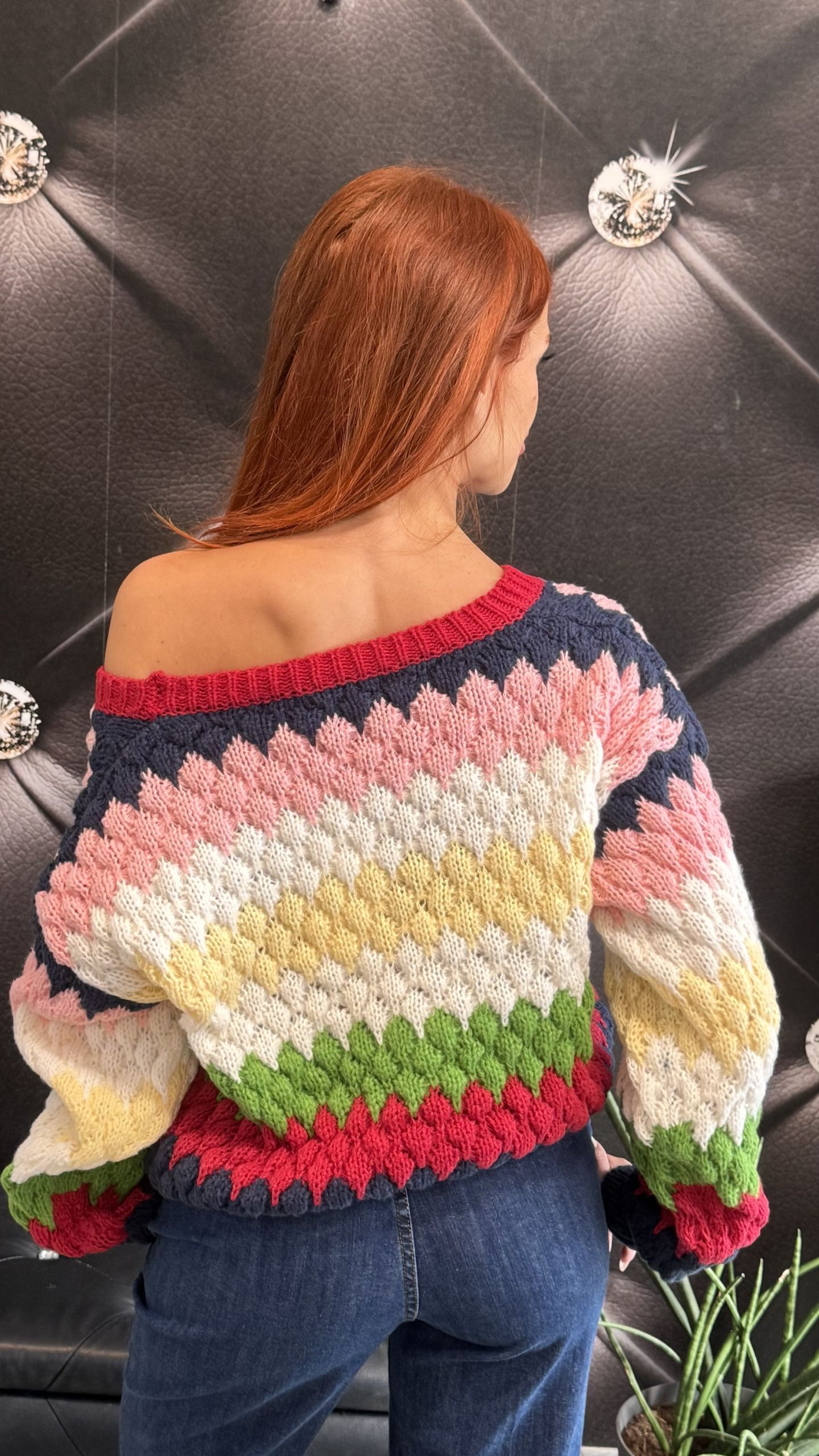 Un cardigan dal fascino irresistibile, perfetto per affrontare l’inverno con stile e comfort. Realizzato in viscosa calda e soffice al tatto, presenta un pattern geometrico multicolore che mixa nuance naturali con toni freddi super chic. Il taglio morbido e la lavorazione tridimensionale lo rendono ideale da indossare sia con jeans che con gonne a vita alta.