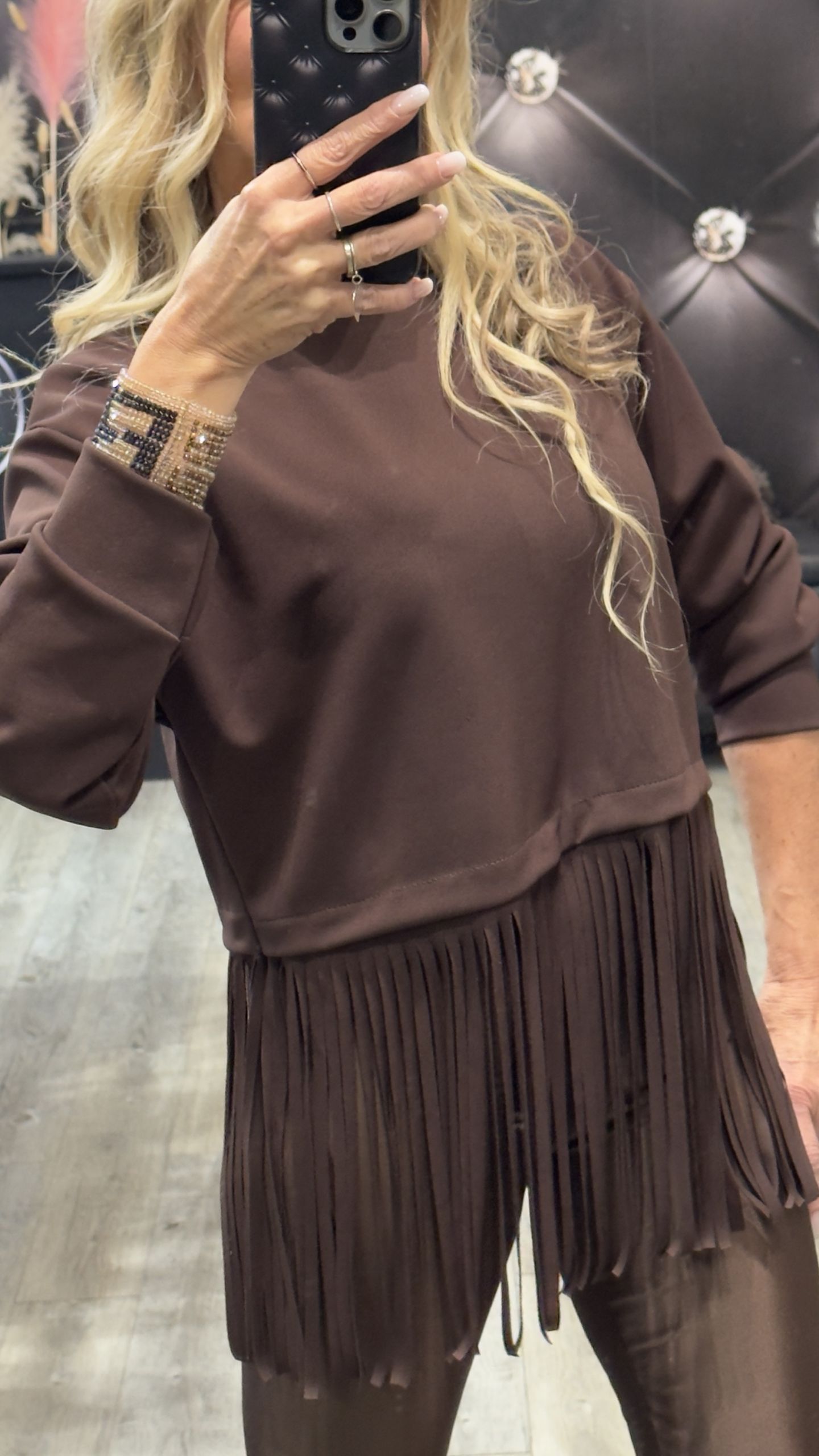 FELPA DALLAS CON FRANGE LUNGHE colore marrone