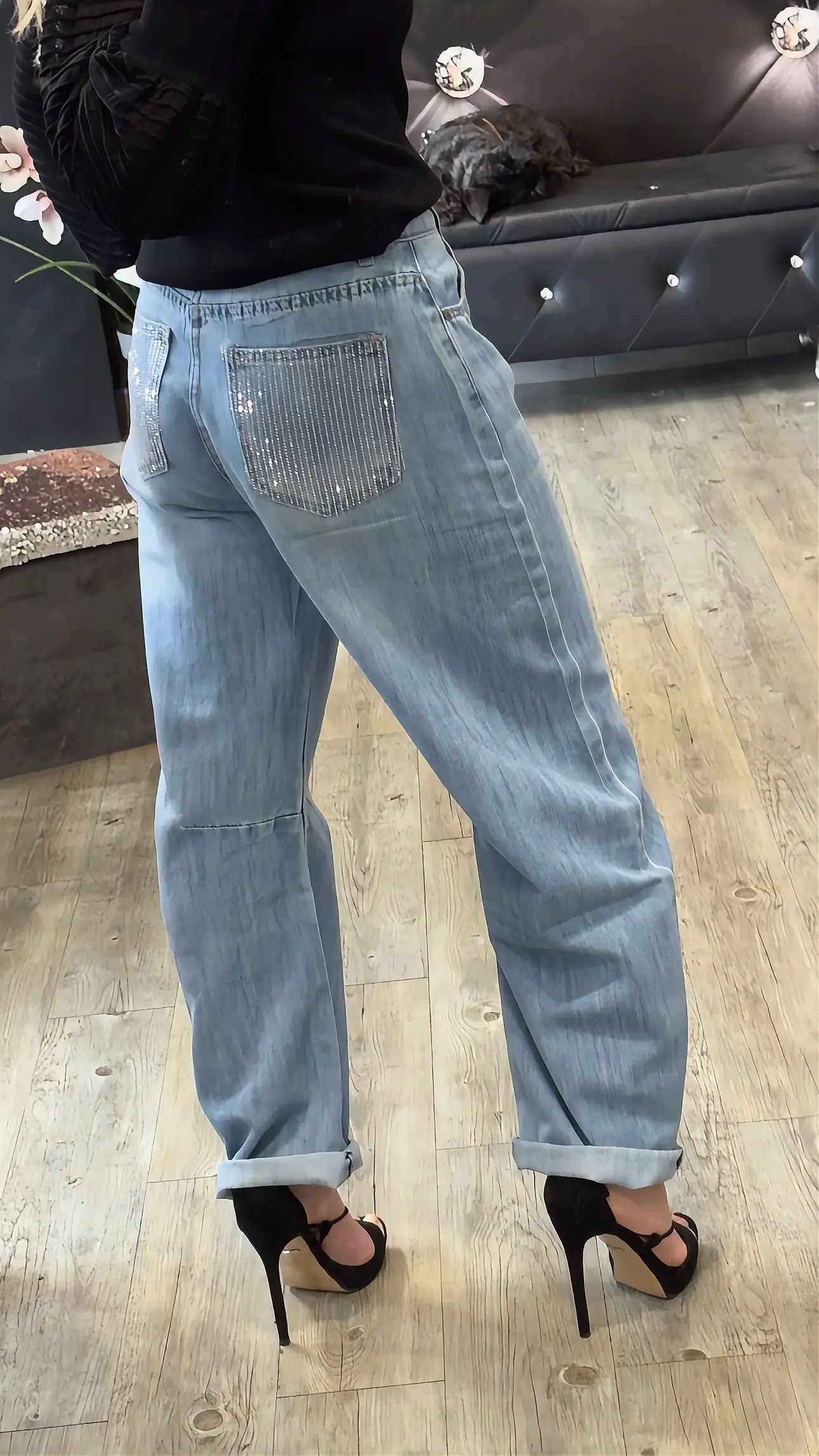 Rivoluziona il tuo guardaroba denim con i nuovi jeans Balloon . Questo modello combina l’estetica urbana dei pantaloni baggy con un tocco di eleganza scintillante, rendendoli perfetti sia per un look da giorno con sneakers, sia per una serata speciale con i tacchi.