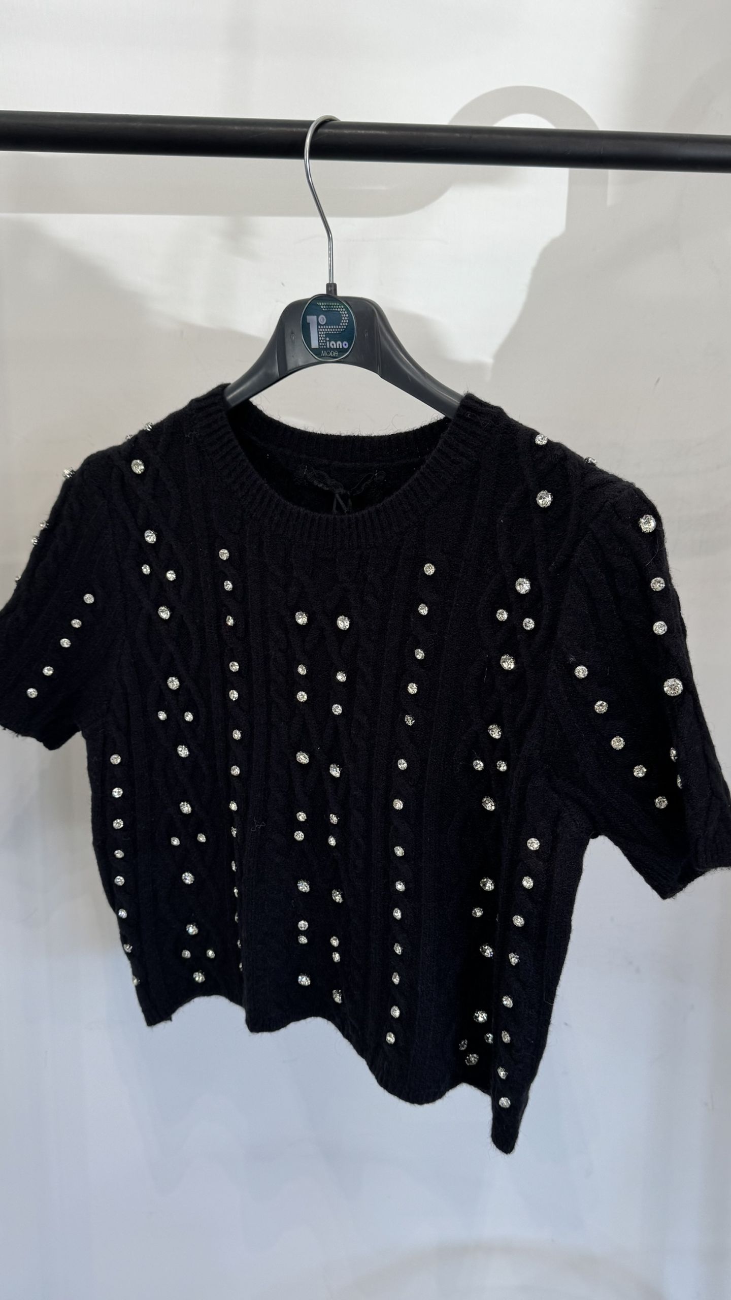 MAGLIA GLAMOUR MANICA CORTA CON STRASS nera
