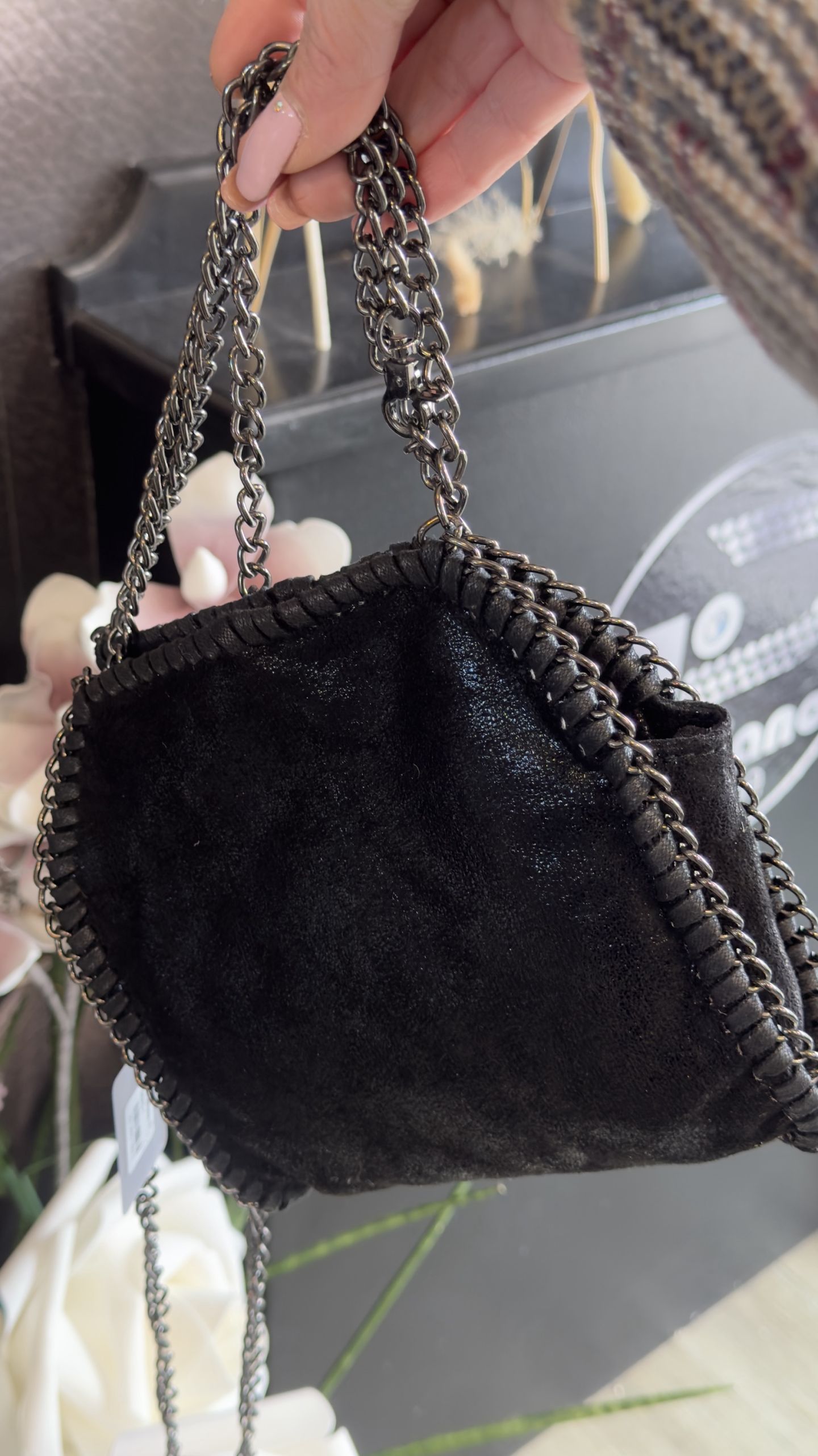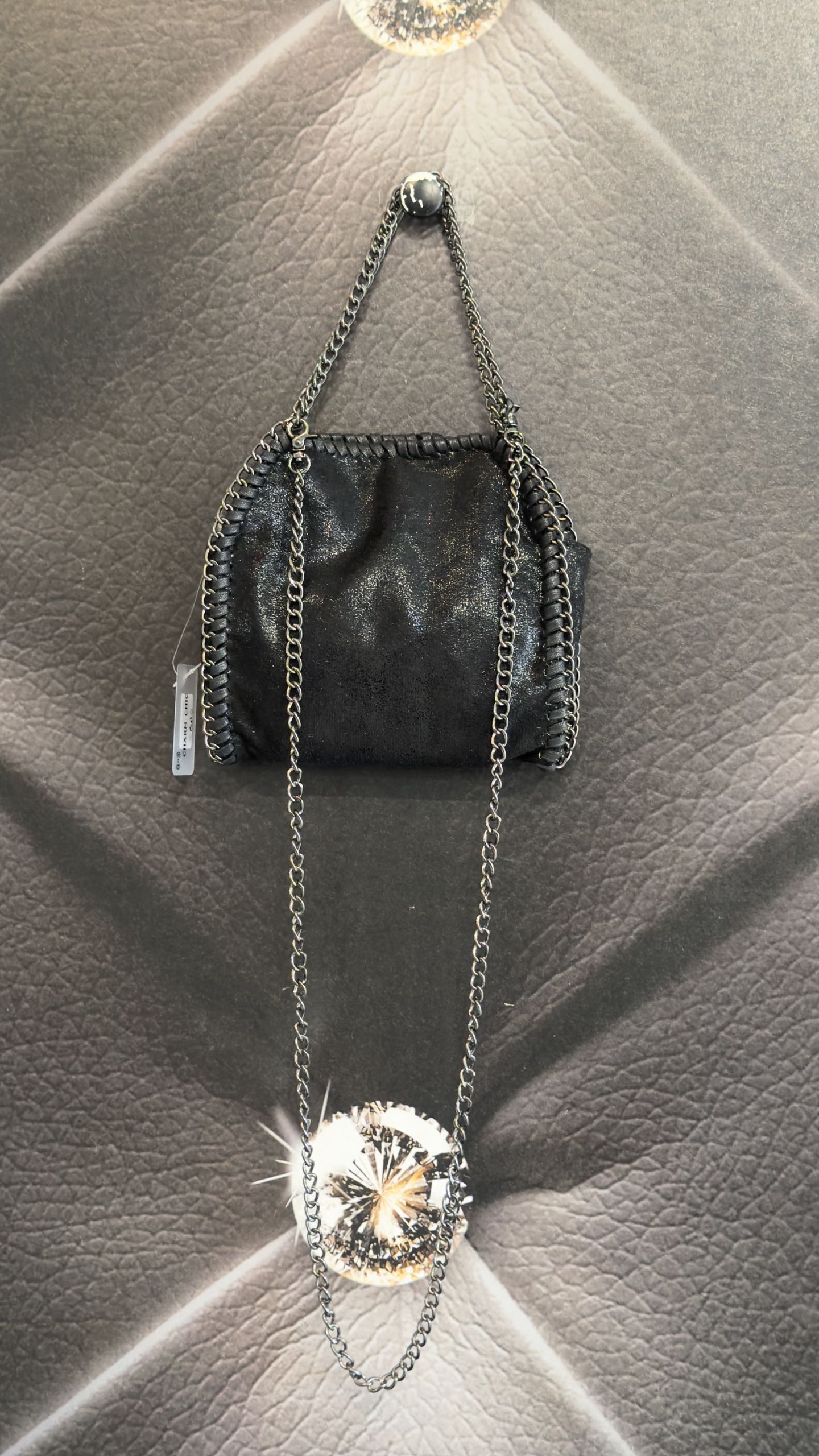 MINI BAG SHIMMER CON BORDI A CATENA BRUNITA colore nero