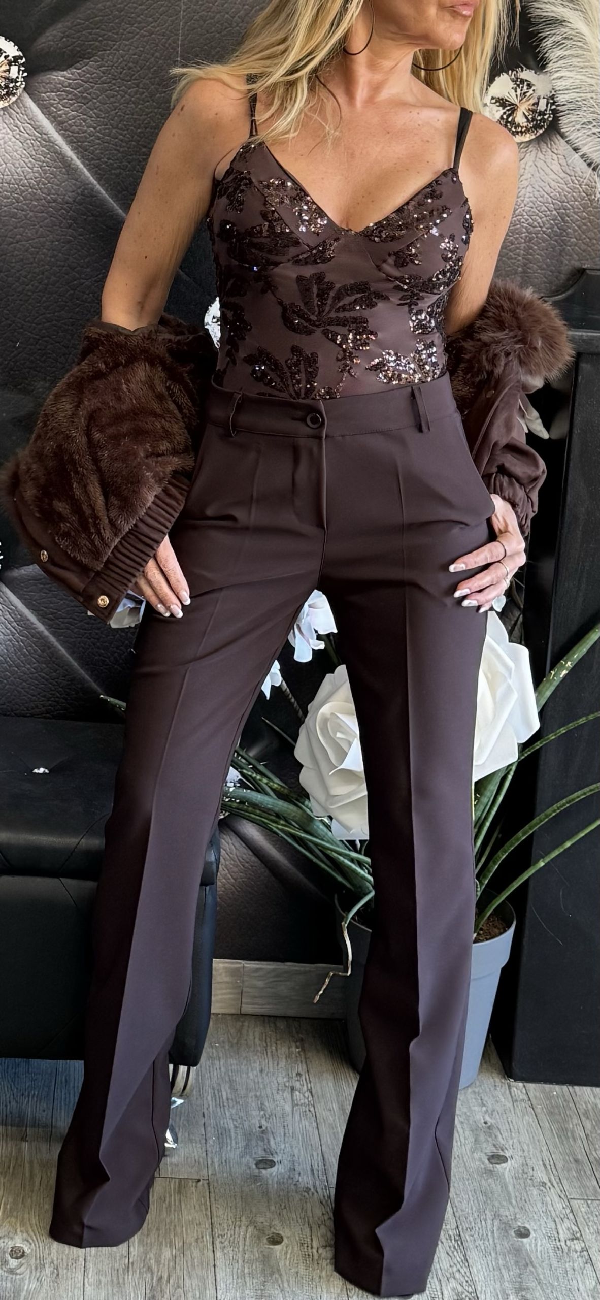 PANTALONE FLARE ELEGANTE marrone scuro