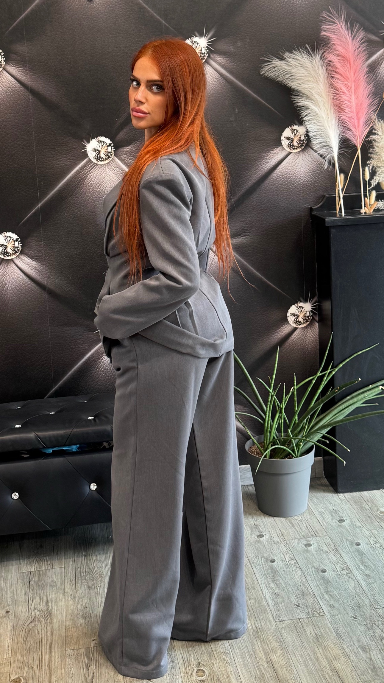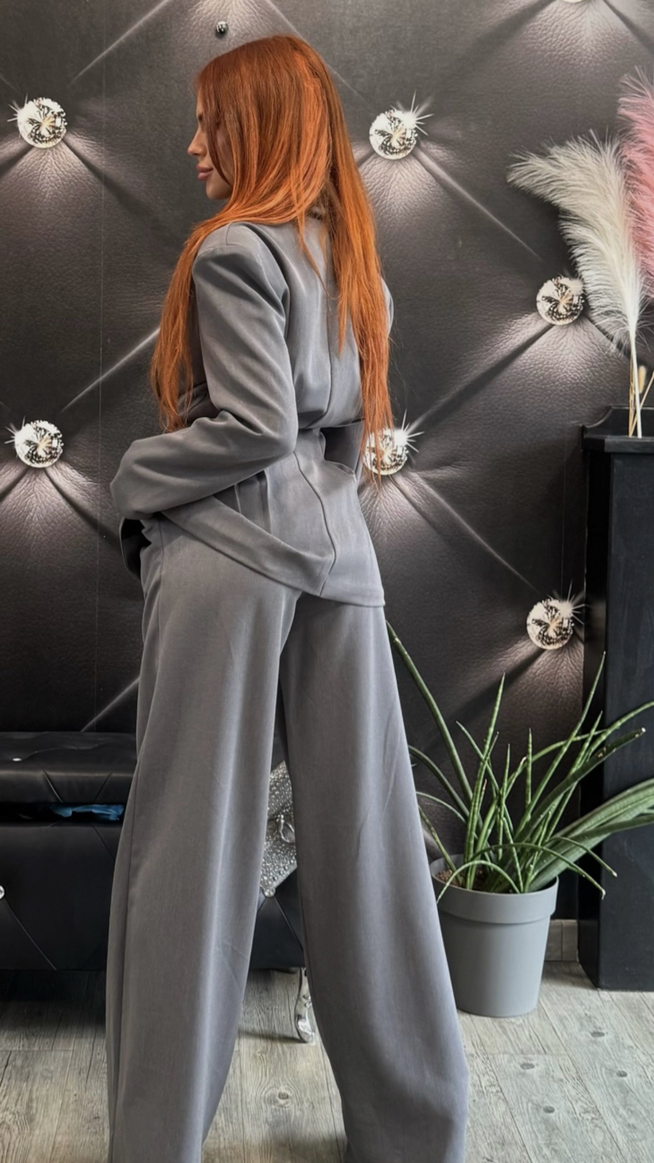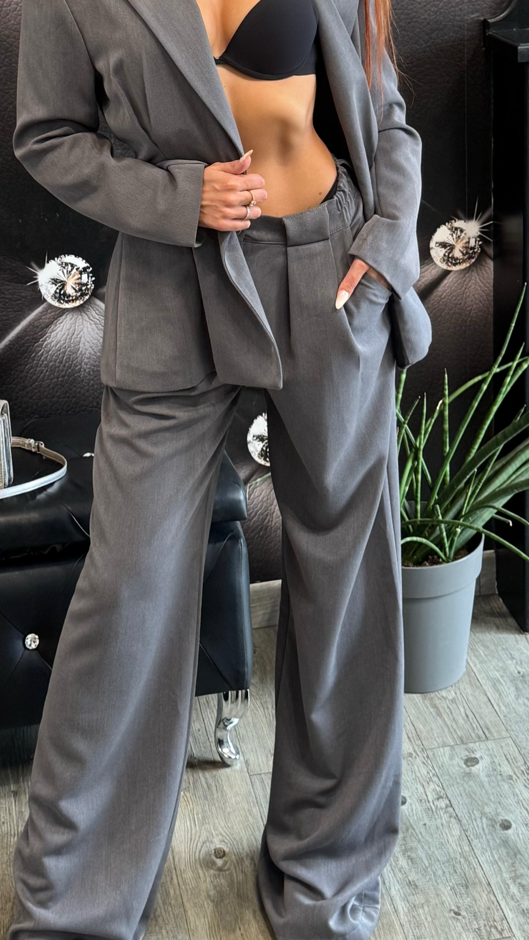 Pantalone grigio dal taglio morbido, perfetto per chi cerca comfort senza rinunciare allo stile. Realizzato in tessuto fluido, presenta pinces frontali che donano struttura e slancio alla figura, mentre l’elastico sul retro in vita garantisce una vestibilità comoda e adattabile a tutte le silhouette.
