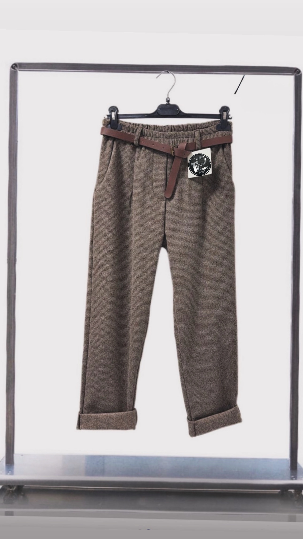 PANTALONE SARTORIALE IN LANA CON QUADRETTI E CINTURA