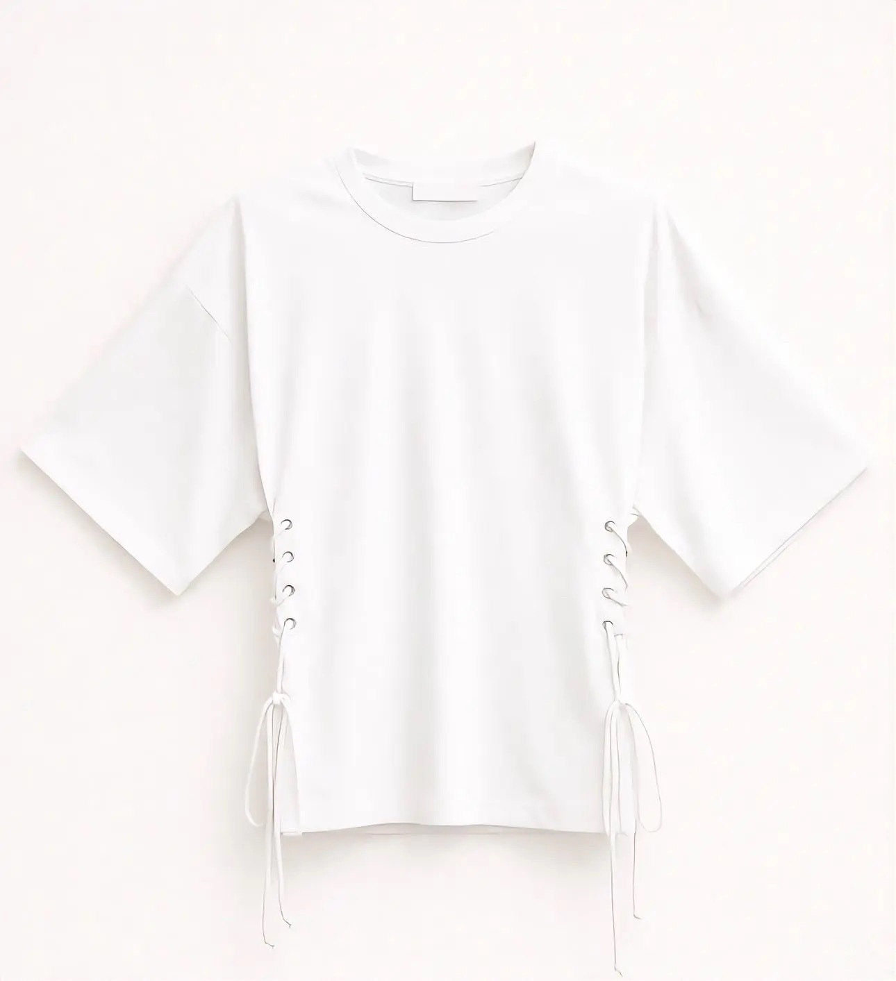 Cerchi la maglietta perfetta ma con un tocco di carattere? Questa T-shirt con lacci laterali è la risposta. Realizzata in un tessuto morbido e coprente, presenta una silhouette oversize con maniche ampie che garantiscono massima libertà di movimento e uno stile urban immediato.